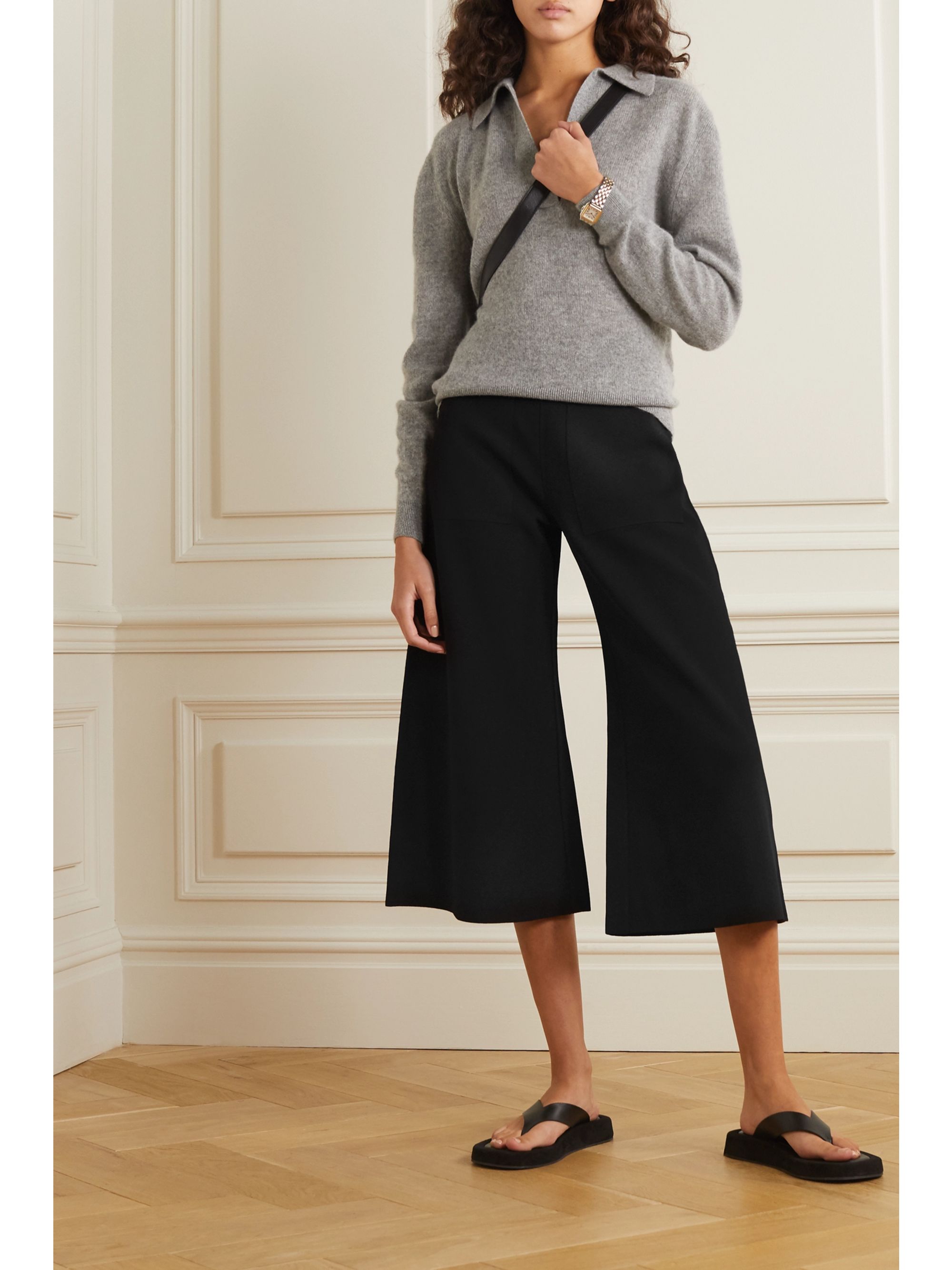 - Black knit wide leg pants