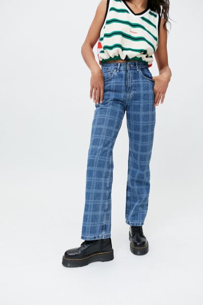 Plaid jean clearance, The Ragged Priest dad jeans in half and clearance