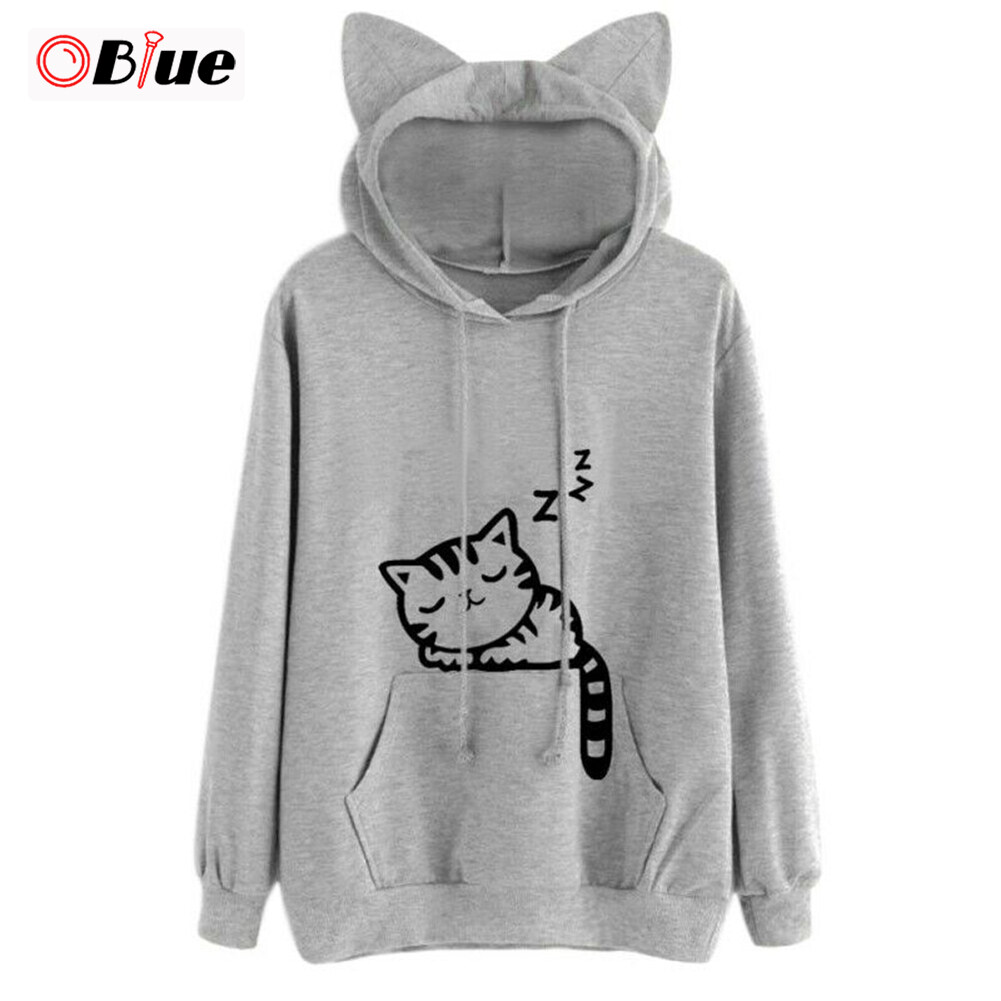 Ladies cat hoodies clearance, Buy Women Girl Cute Cat Print Hoodies clearance
