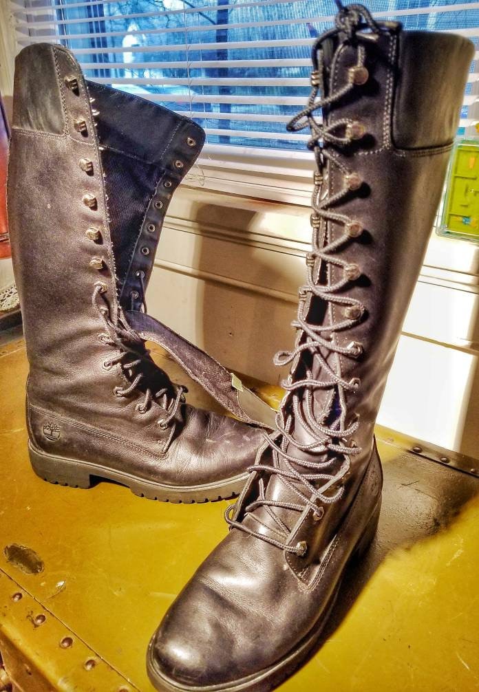 - Black knee high timberlands sold