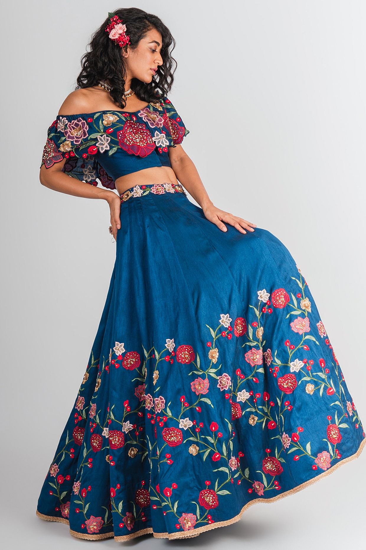 - Crop shirt with lehenga