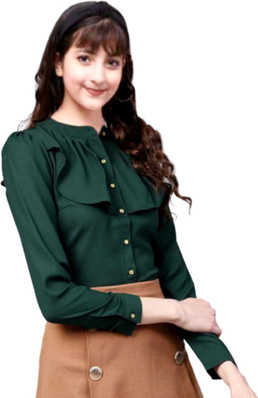 Stylish shirts for womens flipkart clearance, FUNDAY FASHION Women Solid Casual Dark clearance