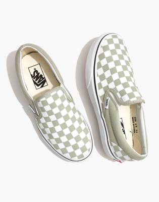 Desert sage vans checkerboard clearance, Desert Sage Green Checker Slip On Vans clearance