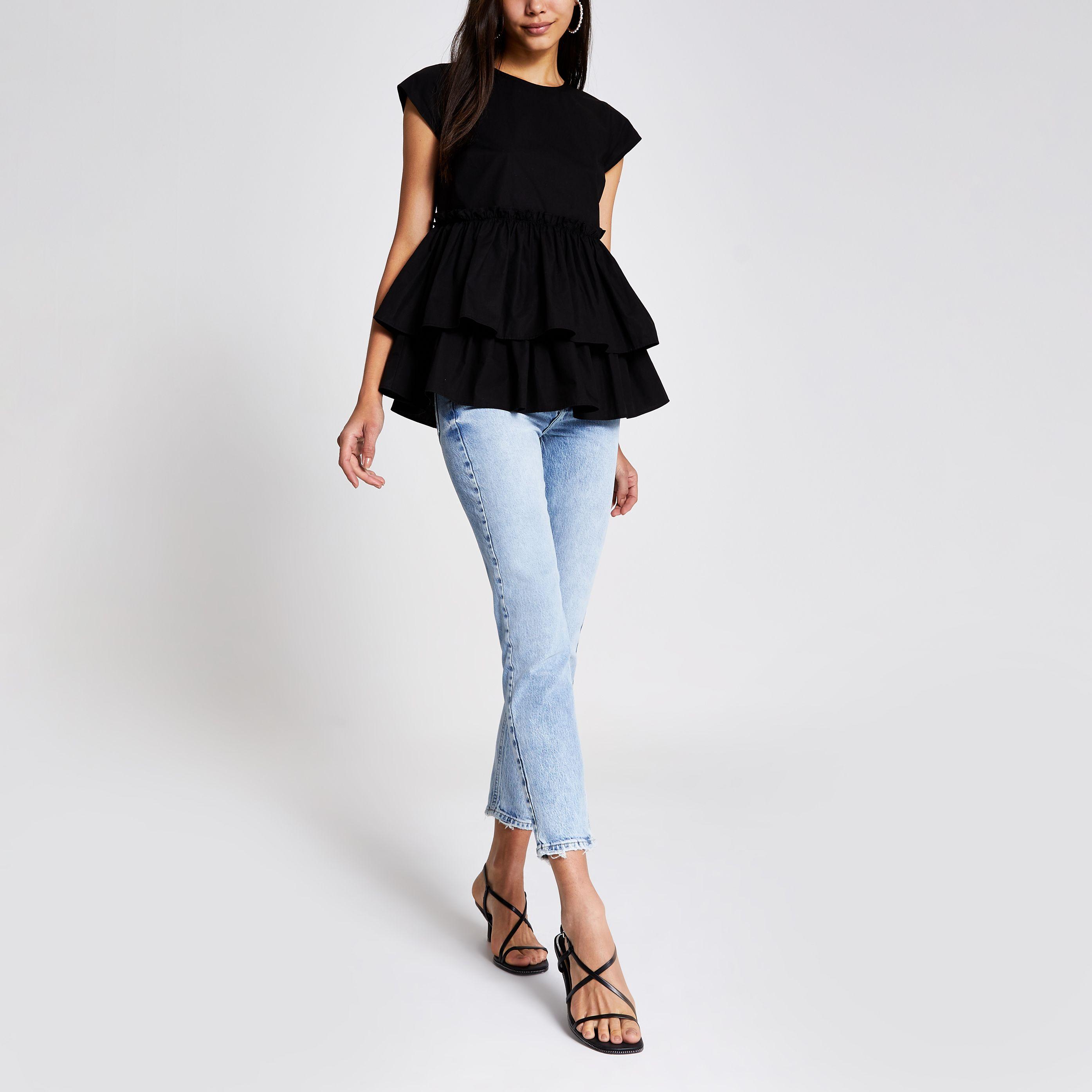 River island black peplum top clearance, River Island Black Poplin Peplum Frill clearance