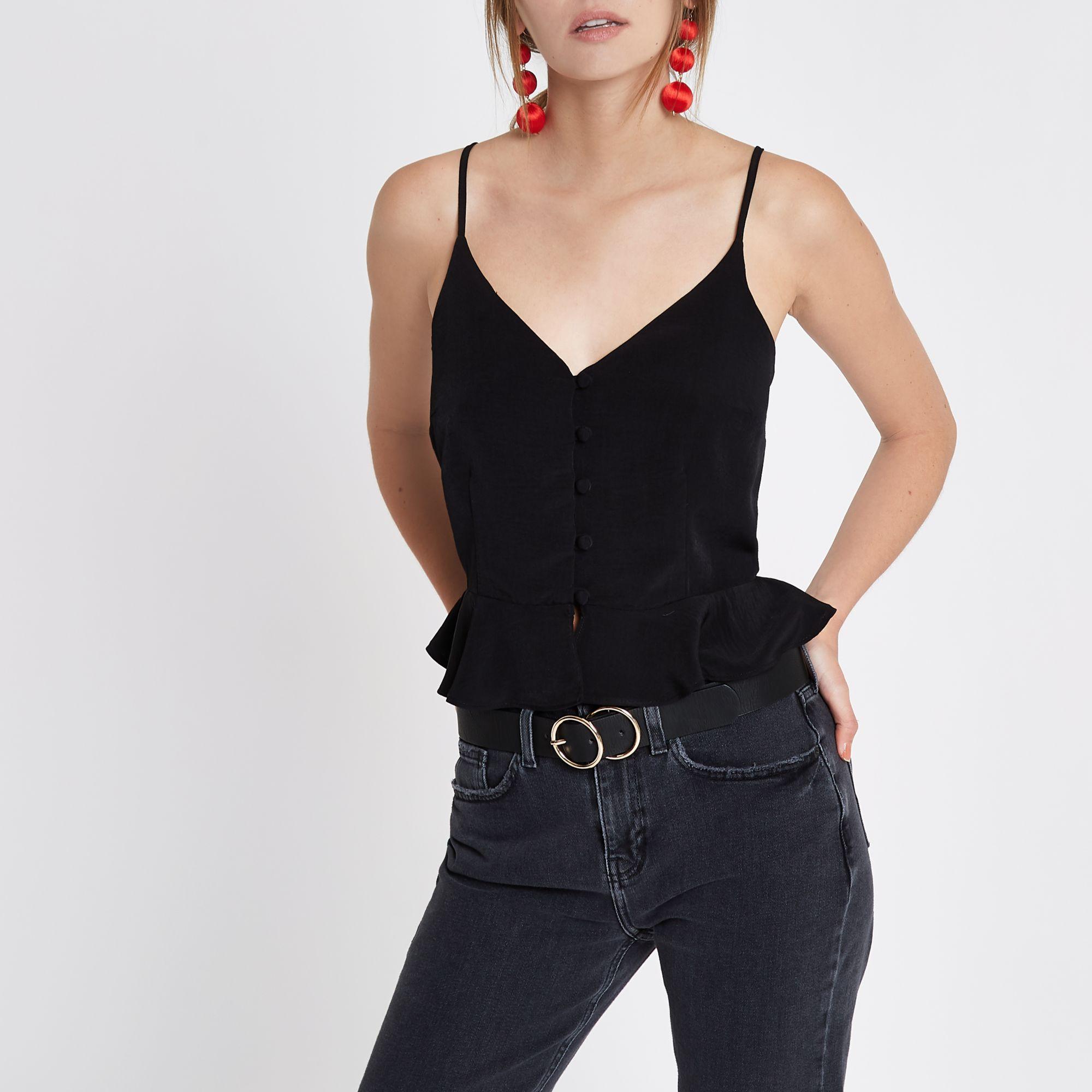 - River island black peplum top sale online