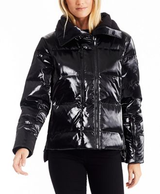 High shine coat womens clearance, Faux Fur Trim High Shine Puffer Jacket clearance