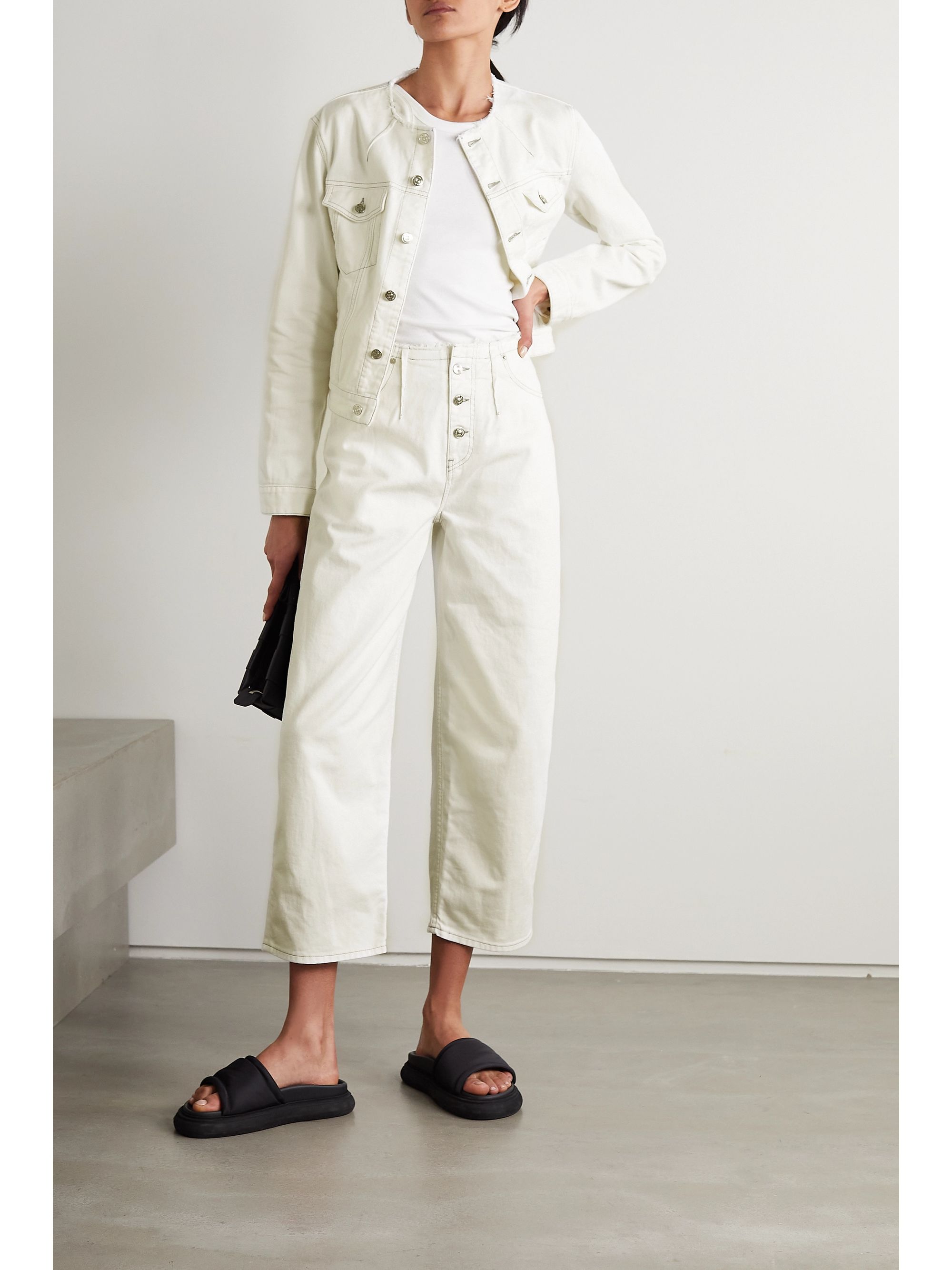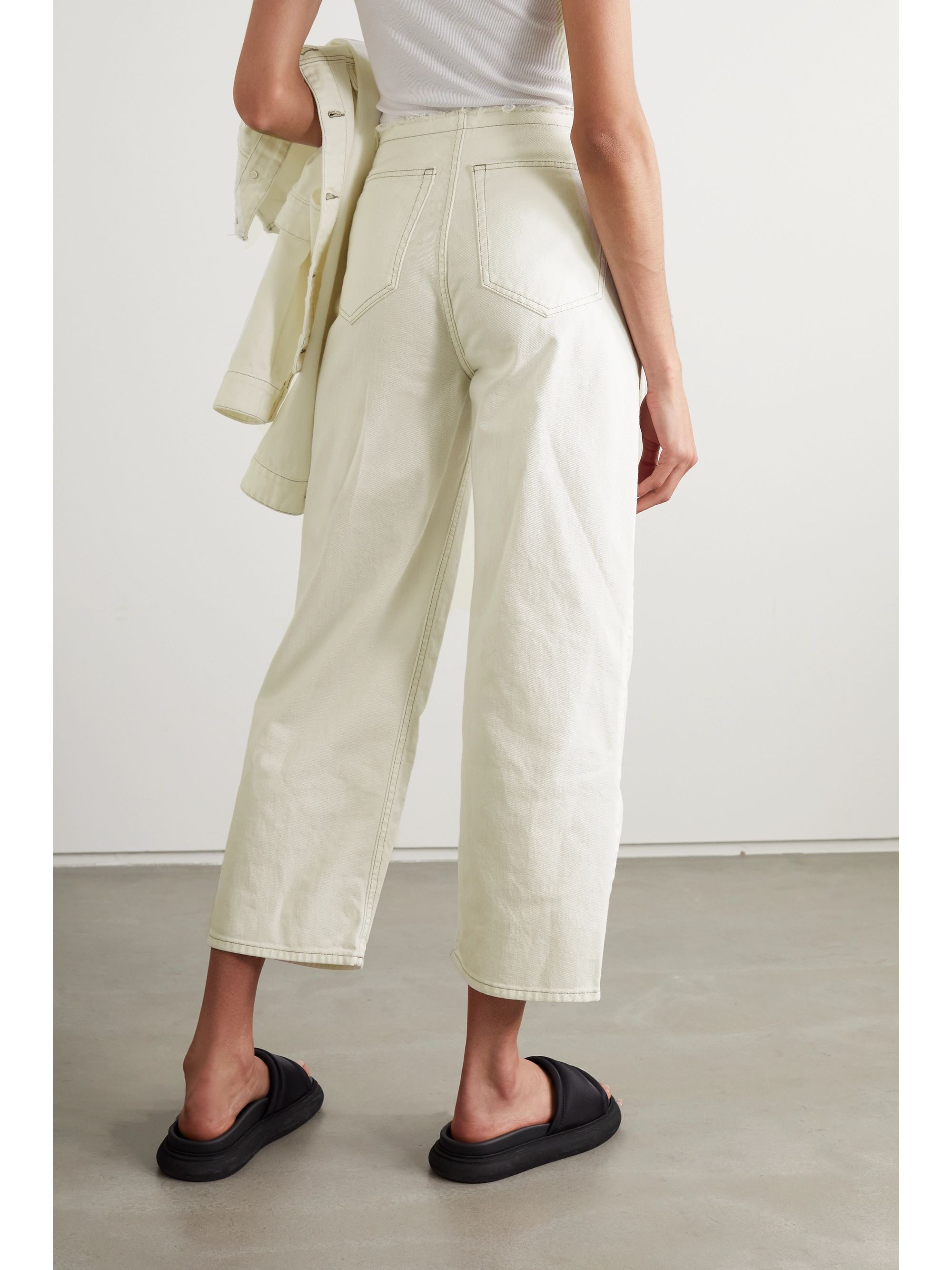 - White distressed straight leg jeans sold