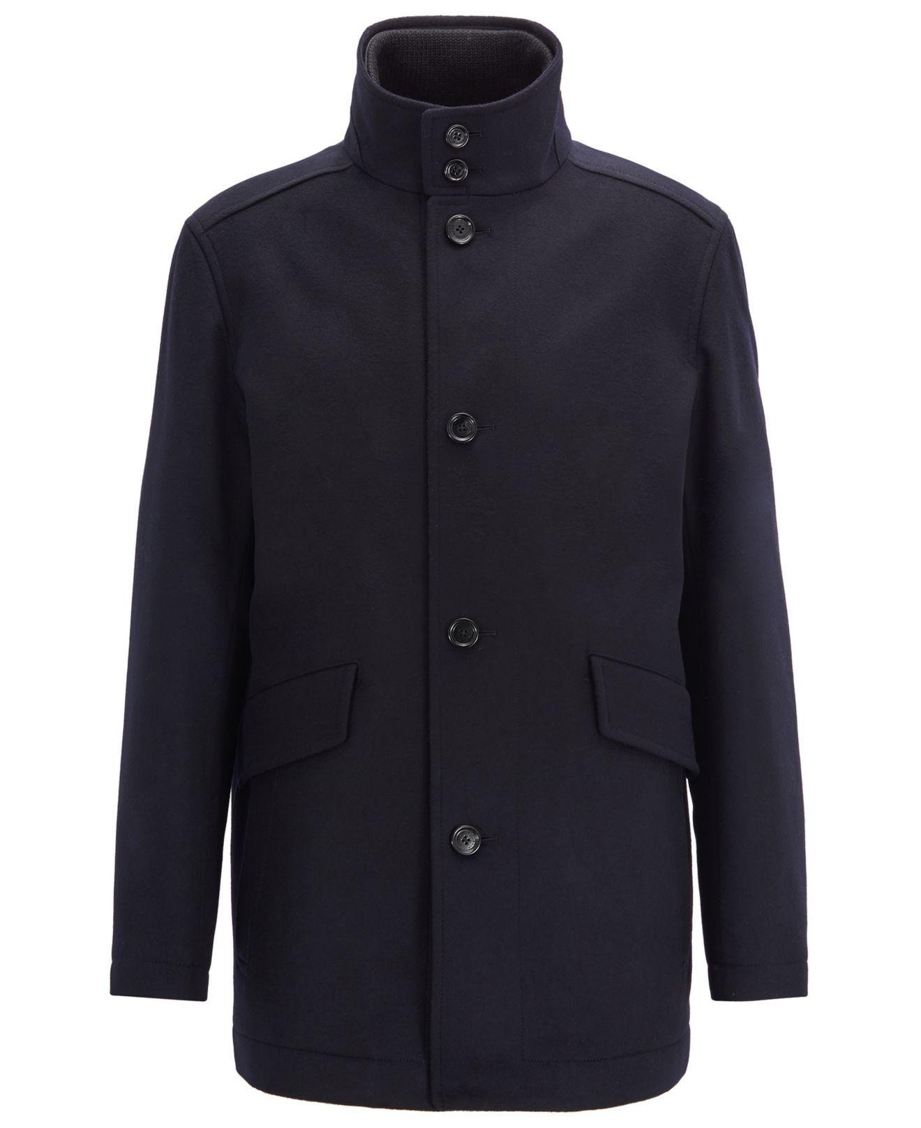 Boss funnel neck coat clearance, Hugo Boss - Funnel Neck Automobile Coat in Wool Blend Twill - Light Grey clearance