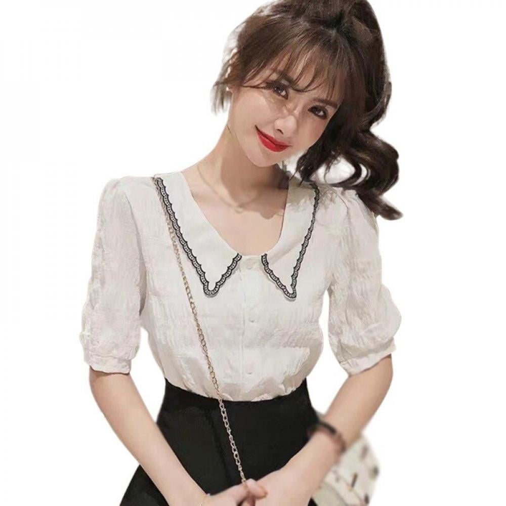 Korean chiffon blouse clearance, Sweet Peter Pan Collar Chiffon Blouse clearance
