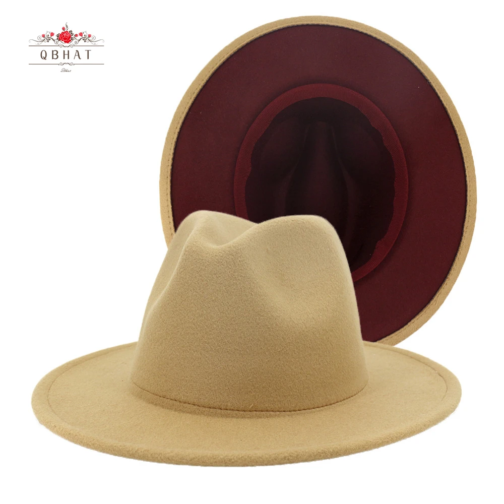 Tan felt hat womens clearance, QBHAT Tan Burgundy Patchwork Faux Wool clearance