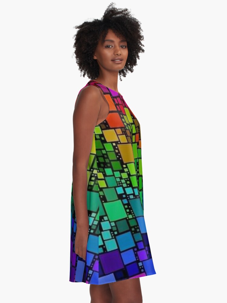 Discokugel kleid clearance, Discokugel Regenbogenquadrate Discofieber Boogie Dance 70er Club Disco Party Retro Kariert | A-Linien Kleid clearance