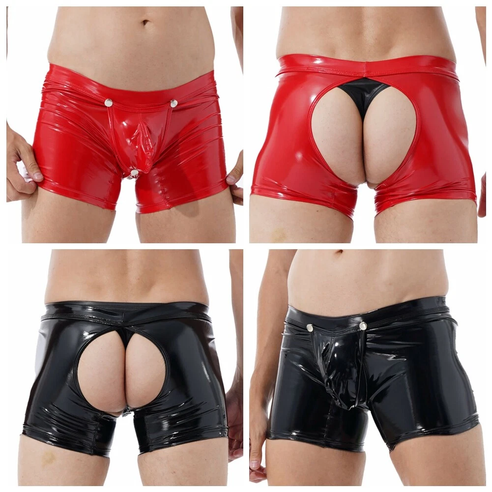 Boxershorts hinten offen clearance, Herren Lackleder Optik Boxershorts Hinten offen Boxer Slip Unterwäsche Höschen clearance