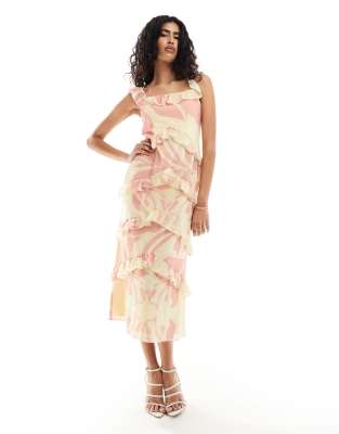 Exklusiv kleid clearance, Pretty Lavish – Cecile – Wadenlanges Kleid in leuchtendem Zitronengelb mit Blumenmuster und Rüschen, exklusiv bei ASOS clearance