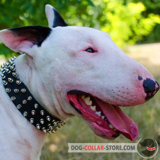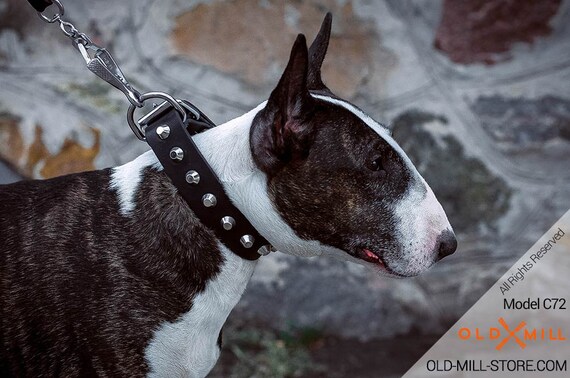 Bull terrier collar clearance, Spiked Leather Bull Terrier Collar clearance