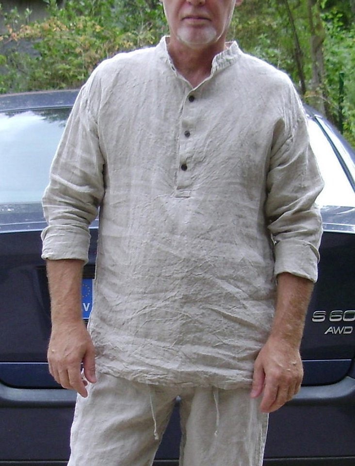 Men's linen shirt beach wedding clearance, Mens Linen Shirt Banded Collar Shirt clearance
