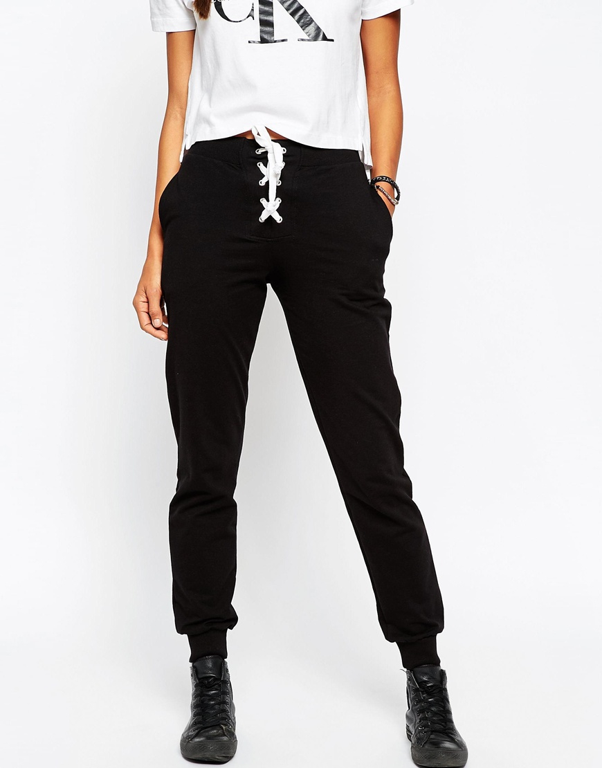 Tie up joggers clearance, ASOS Joggers With Lace Up Tie in Black clearance