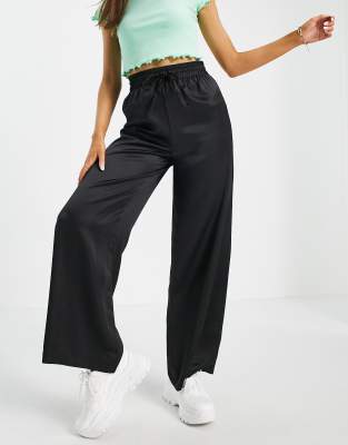 - Black satin trousers wide leg sale online