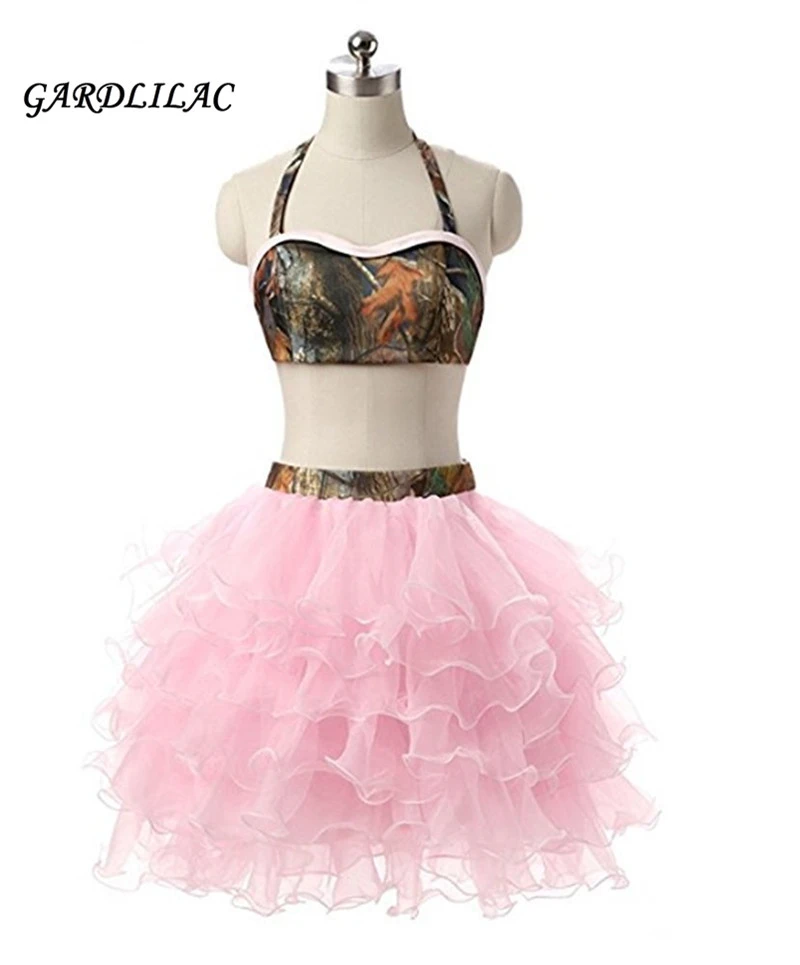 Two piece homecoming dresses clearance, Halter Camo Two Piece Homecoming Dress clearance