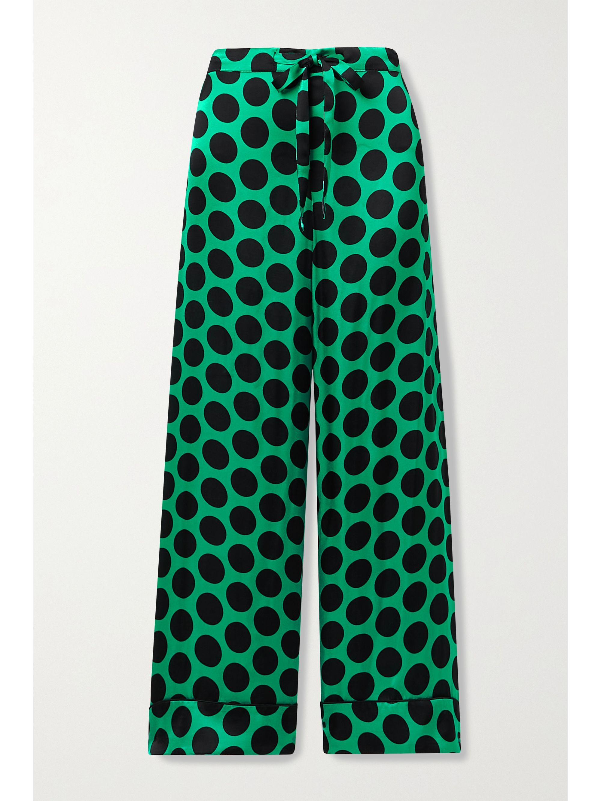 Green polka dot trousers clearance, Green Polka-dot satin pants | HALPERN clearance