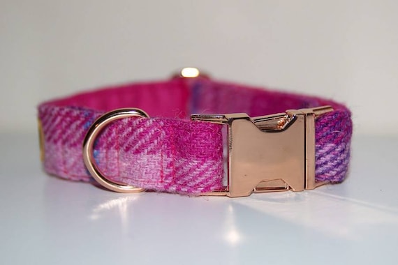 Pink tweed dog collar clearance, Handmade Dusky Pink 'Harris Tweed' Dog clearance