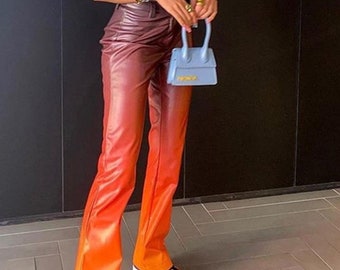 - Orange patent leather pants shop