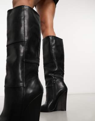 Stiefel mit hohem keilabsatz clearance, ASOS DESIGN – Carmella – Schwarze Stiefel mit Keilabsatz clearance