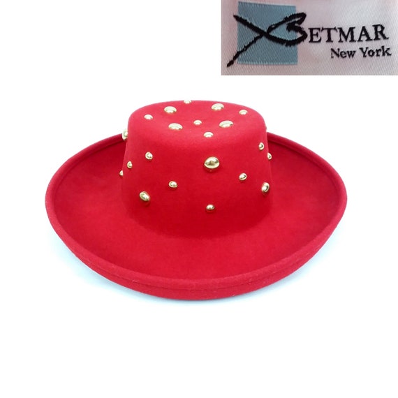 Vintage betmar new york hats clearance, Vintage 80s 90s Studded Red Wool Felt clearance