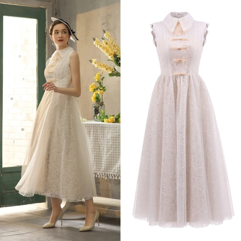 One piece daily wear clearance, VINTEAGE Champagne lining lace dress clearance