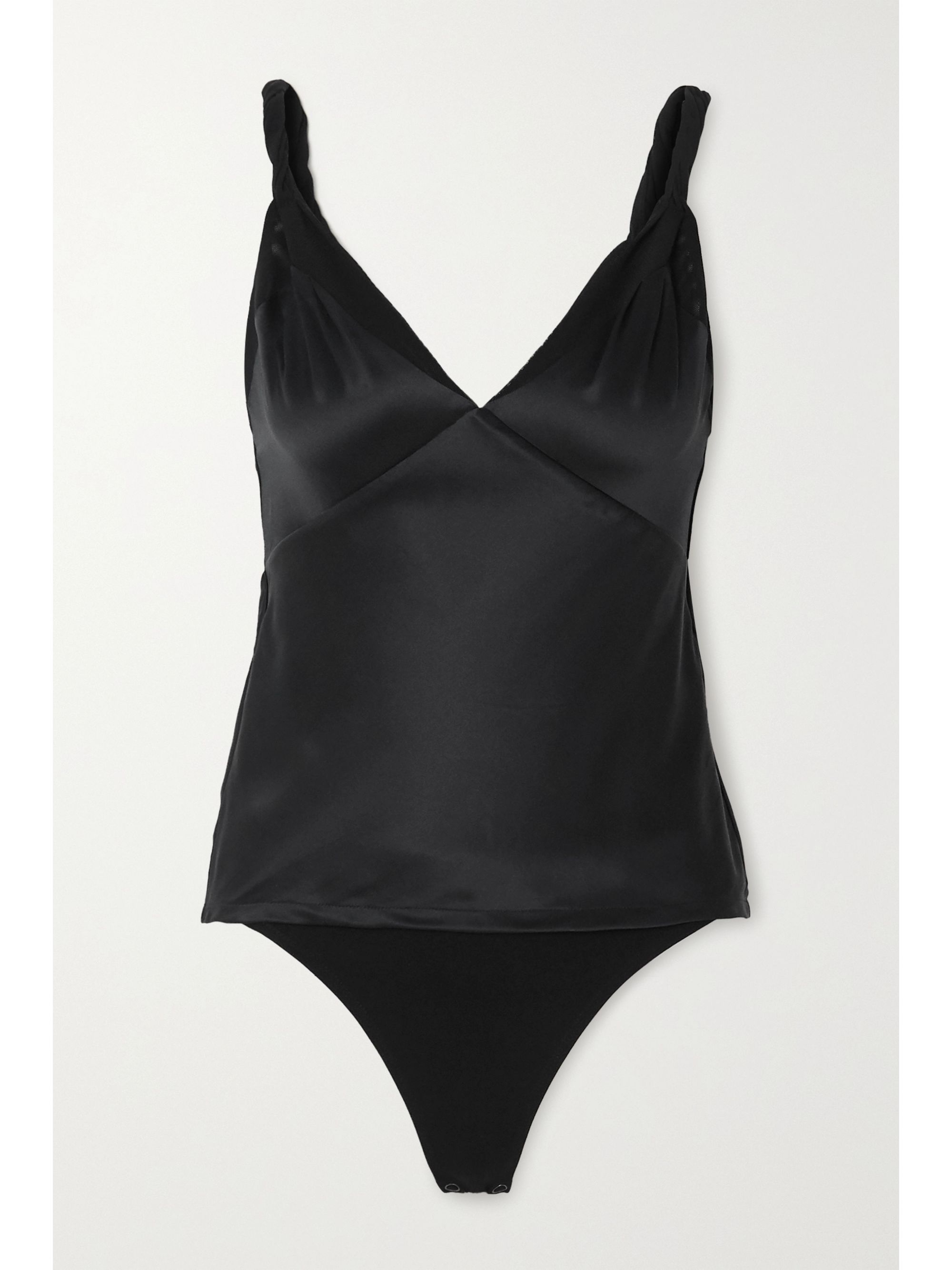 Black tulle bodysuit clearance, Black Draped stretch-tulle bodysuit clearance