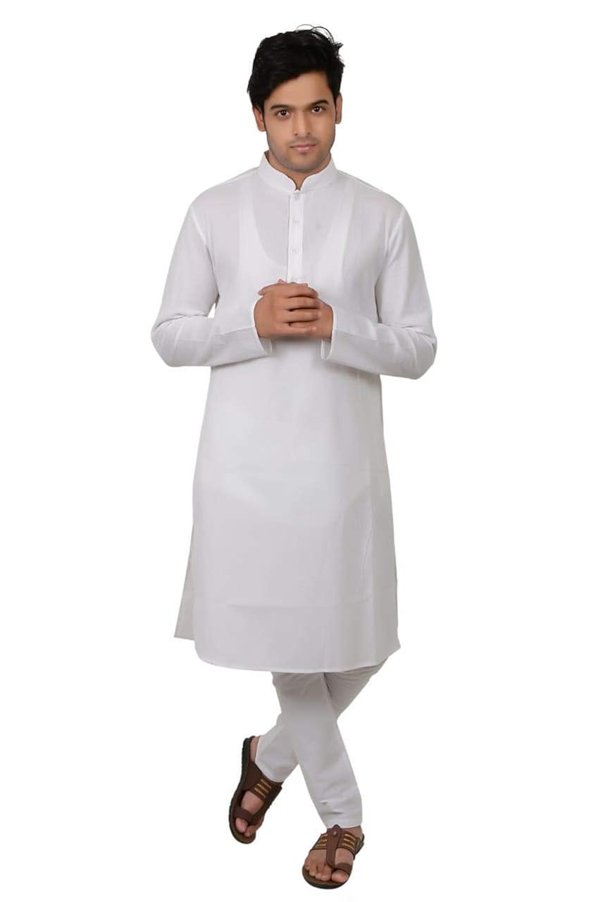 Kurta for puja clearance, Puja Wear Cotton And Linen Kurta Set clearance