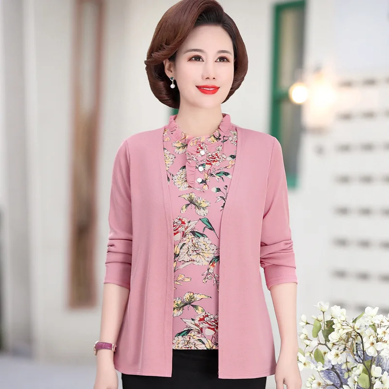 Sweaters for elderly ladies clearance, Pink Green Office Ladies Knit Fall Sweaters Women Middle aged Elderly Sweater Fake Two Piece clearance
