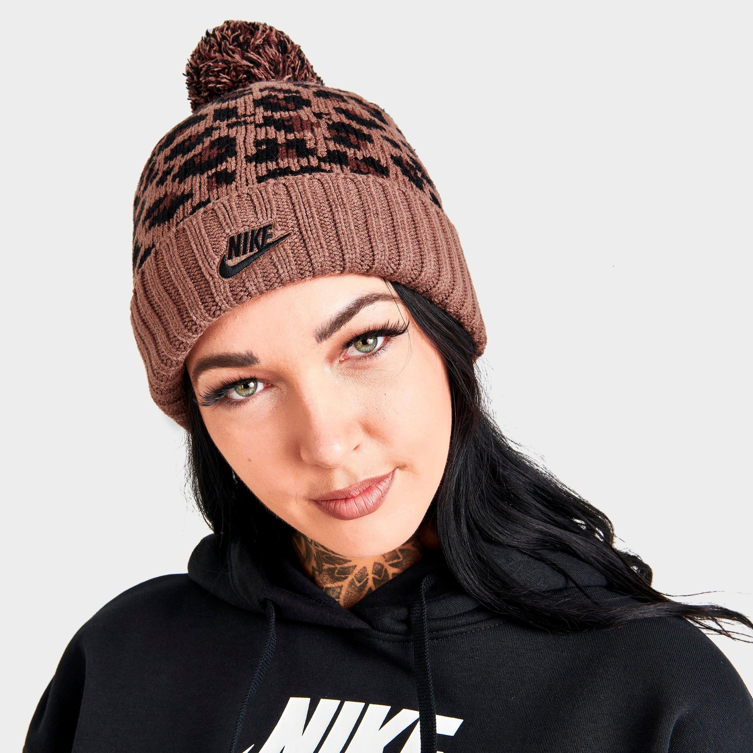 Nike leopard print hat clearance, Nike leopard print pom pom cuffed clearance