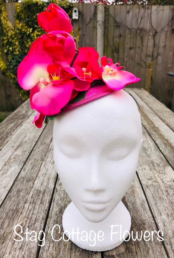 Pink orchid fascinator clearance, Hot Light Pink Orchid Flower Saucer clearance