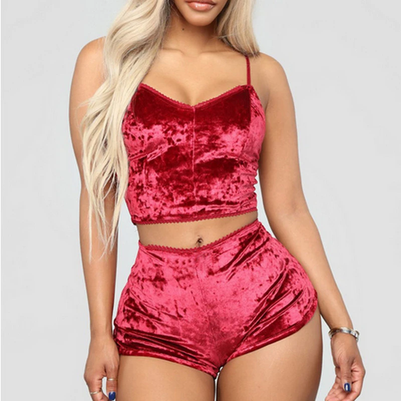 Velvet 2 piece pajama set clearance, Womens Sexy Velvet 2 Piece Pajama Set clearance