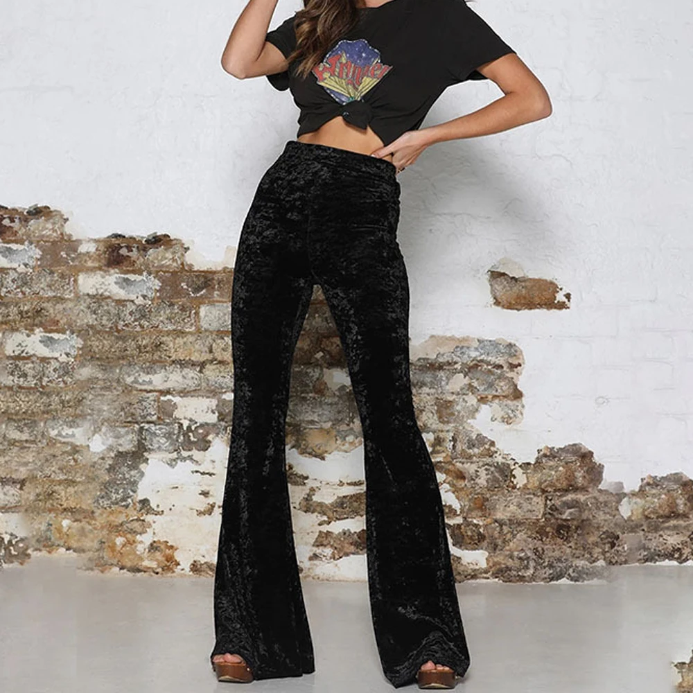 Womens velvet bell bottoms clearance, Women Velvet High Waist Stretchy Shiny clearance