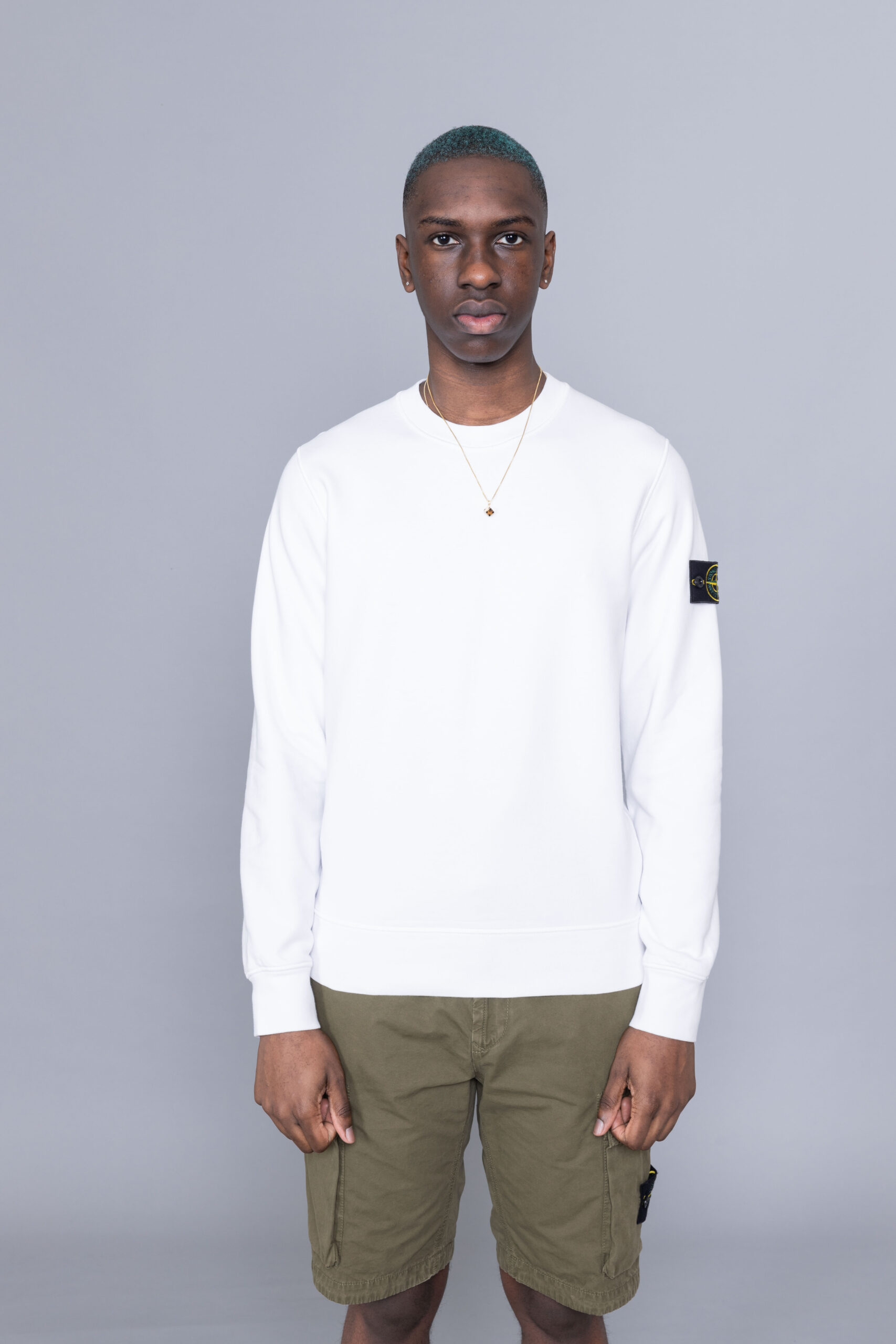 - Stone island white crewneck