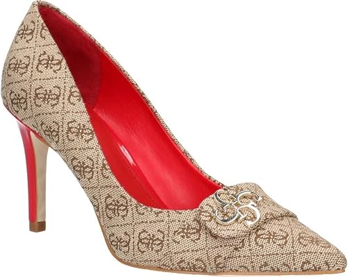 Guess heels uk clearance, Guess Estell Logo Beige Red Womens clearance