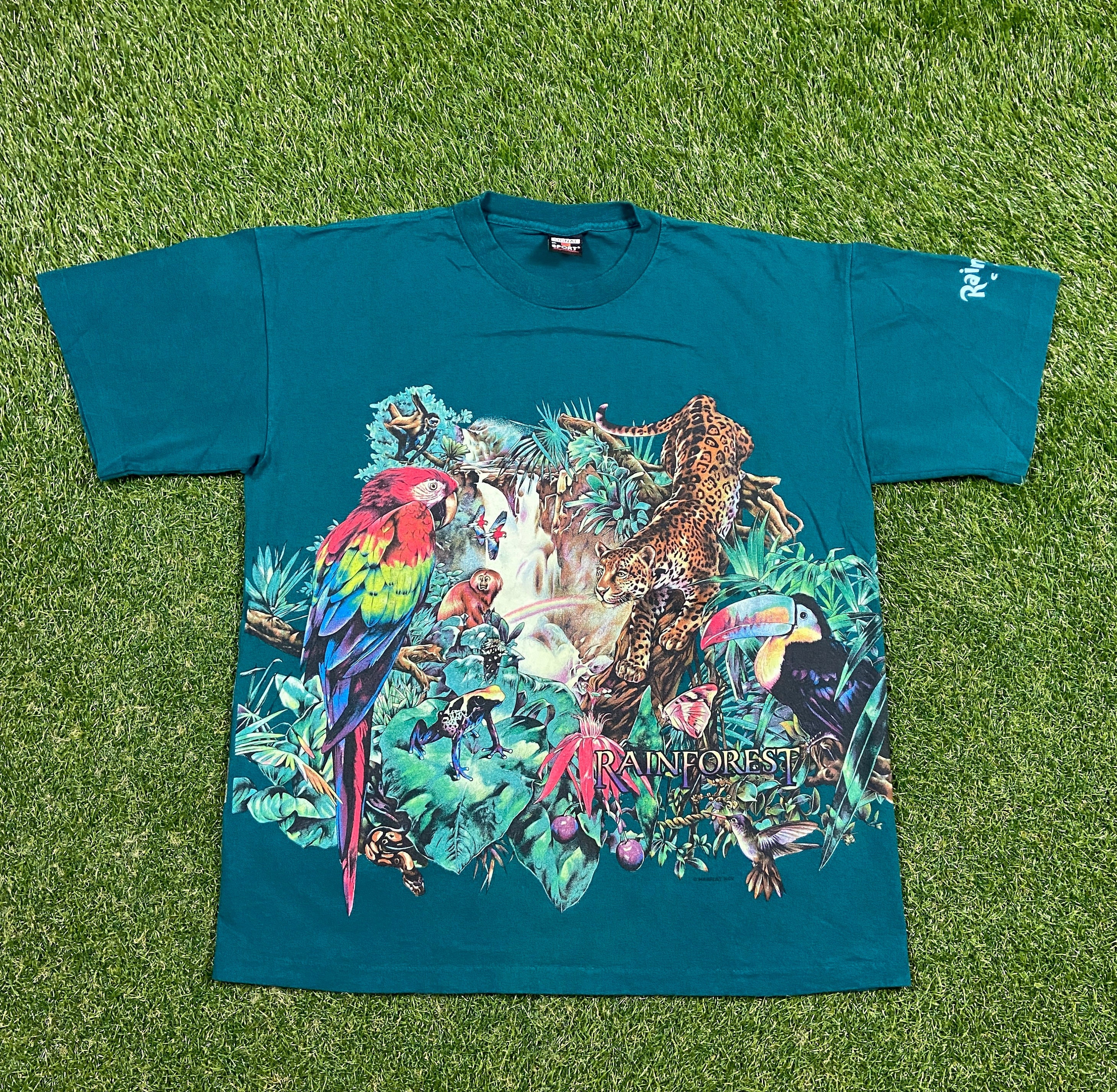 Rainforest cafe t shirts clearance, Vintage Rainforest Cafe T Shirt Tee Signal Sports Made USA Size Xtra Large XL Habitat Planet Earth Animals 1990s 90s All Over clearance