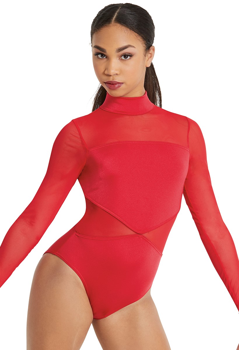 Red mesh leotard clearance, Girls Red Mesh Turtle Neck Ballet clearance