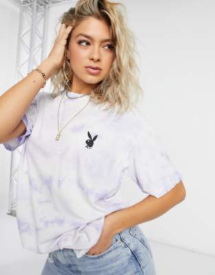 Playboy tie dye t shirt clearance, Missguided Playboy X Lilac Tie Dye clearance