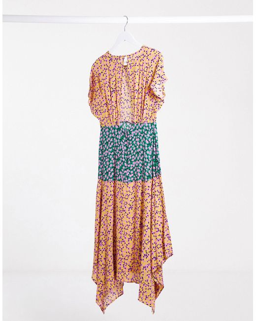 - Topshop mixed floral hanky hem midi dress in multi shop