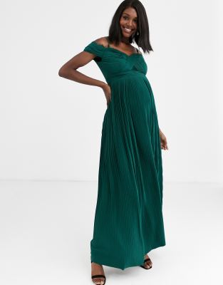 Forest green maternity gown clearance, PinkBlush Forest Green Off Shoulder clearance