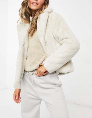 - Faux fur short jacket beige shop