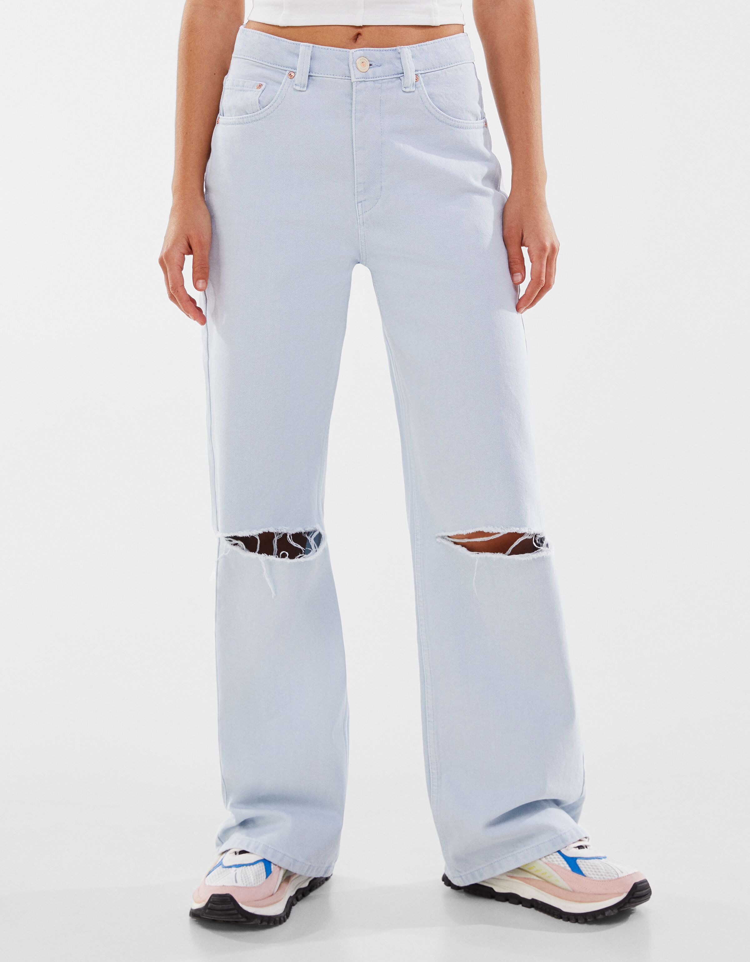 - Shopping Wide leg twill trousers with rips
