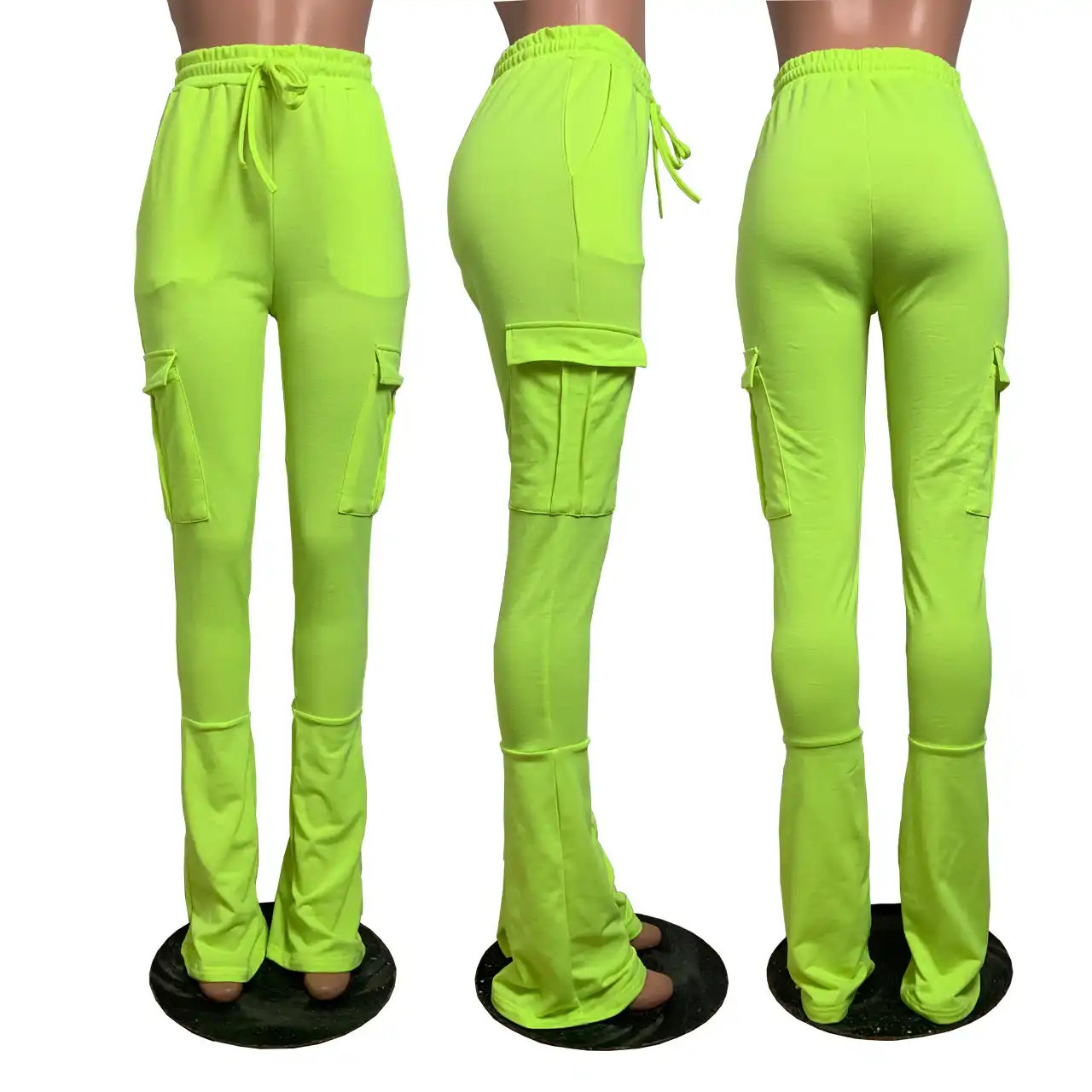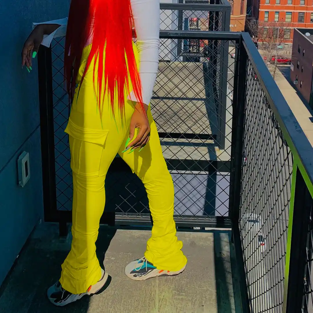 Stacked leggings with pockets clearance, 2020 Flare Cargo Pants Women High Waist clearance