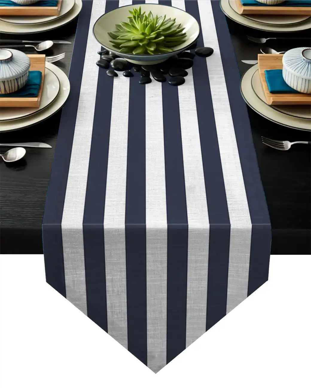 - Blue and white striped table runner shop