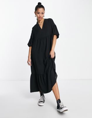 Midi hängerkleid clearance, ASOS DESIGN – Midi-Hängerkleid in Weiß mit Kragen und Knopfleiste clearance