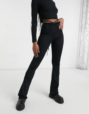 Bershka schlaghose mit schnürung clearance, Bershka – Gerippte Schlaghose mit Bindegürtel in Schwarz clearance
