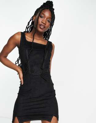 Figurbetontes schwarzes kleid clearance, Daisy Street – Figurbetontes Kleid aus schwarzem Wildlederimitat mit eckigem Ausschnitt clearance