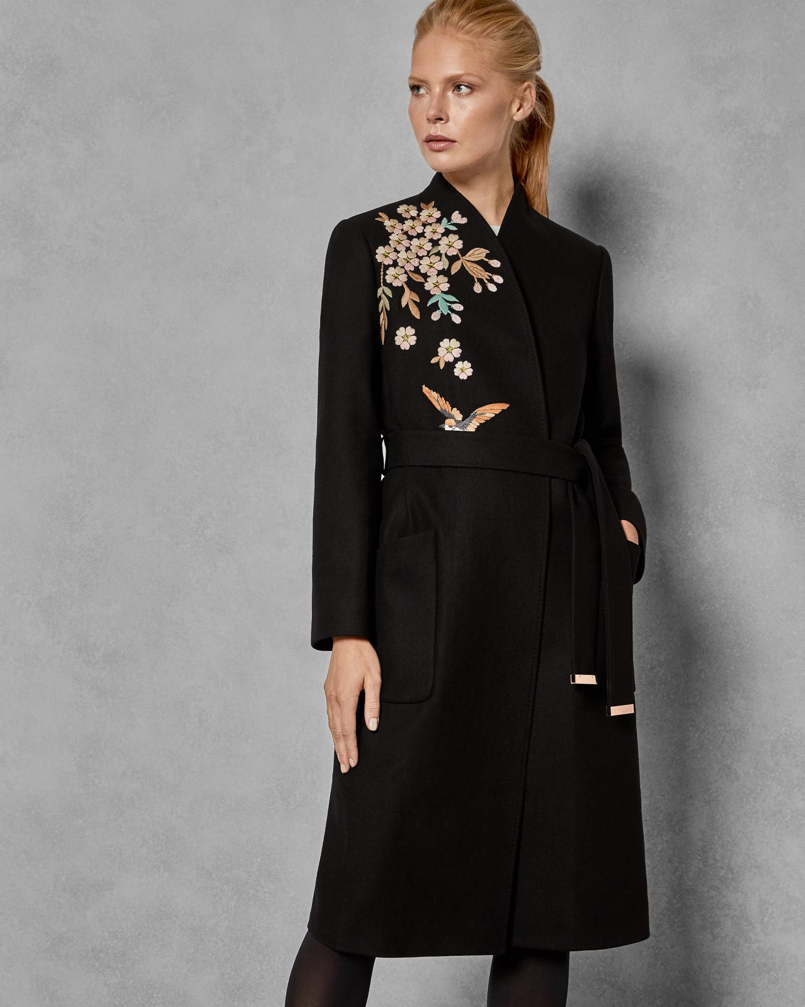 Embroidered wool coat clearance